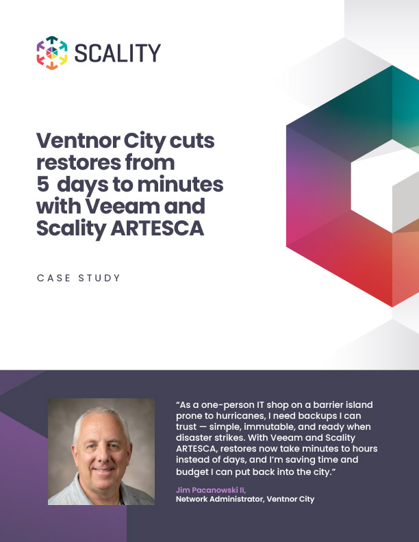 For Ventnor City, immutability wasn’t a nice-to-have — it was the line between recovery and repeating the same failure. To rebuild trust in its backup strategy after a ransomware attack and prepare for both cyber threats and hurricane-driven outages, Ventnor City deployed Veeam Backup & Replication with Scality ARTESCA object storage.
