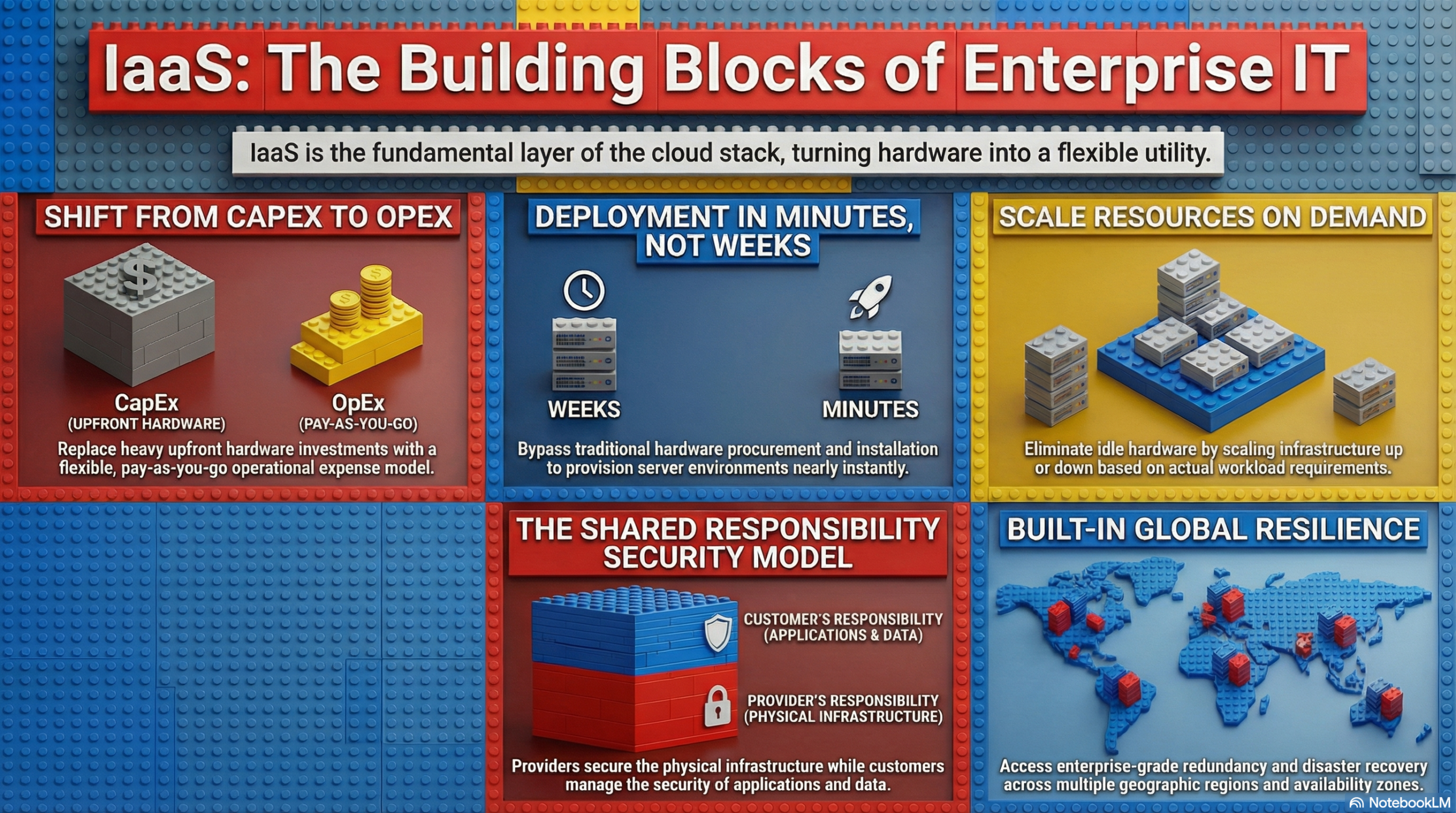 Infrastructure as a Service (IaaS) is a cloud computing model that delivers virtualized computing resources—servers, storage, networking, and operating systems—to enterprises on demand, with customers paying only for resources they consume.